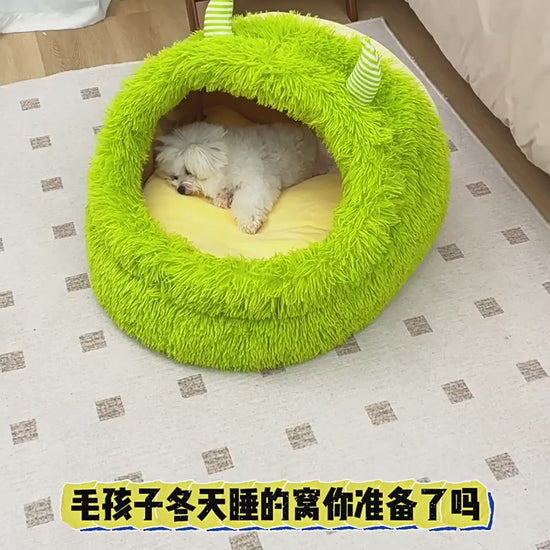 Cozy Pet Nest - Warm Semienclosed Plush Bed, S/M/L/XL/XXL with Detachable Mat for Cats & Dogs